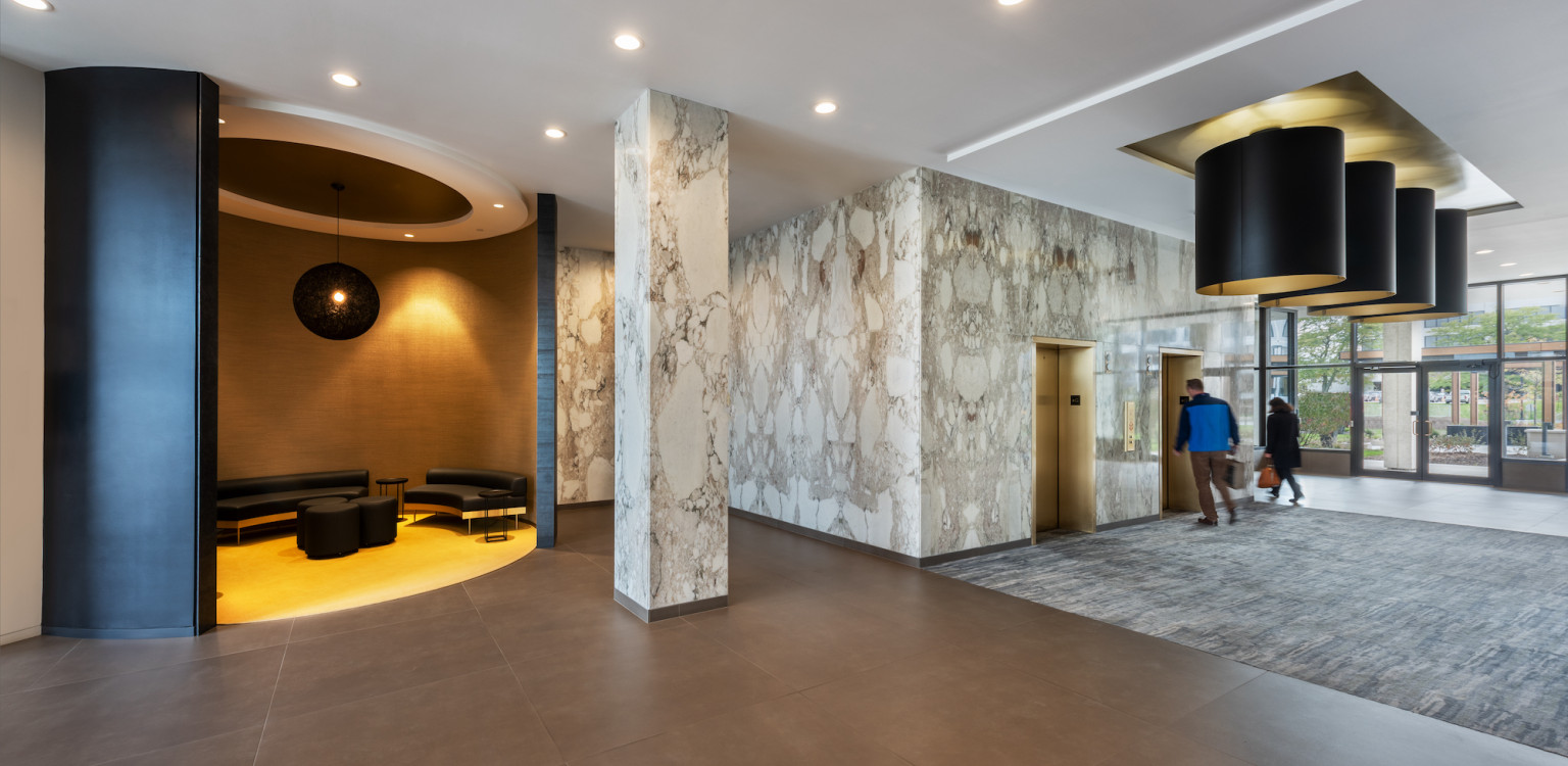 Development Solutions Inc. (DSI) was selected by Franklin Partners through a negotiated bid process to manage the construction of the lobby, corridors and amenities at 1900 Spring Road in Oak Brook.