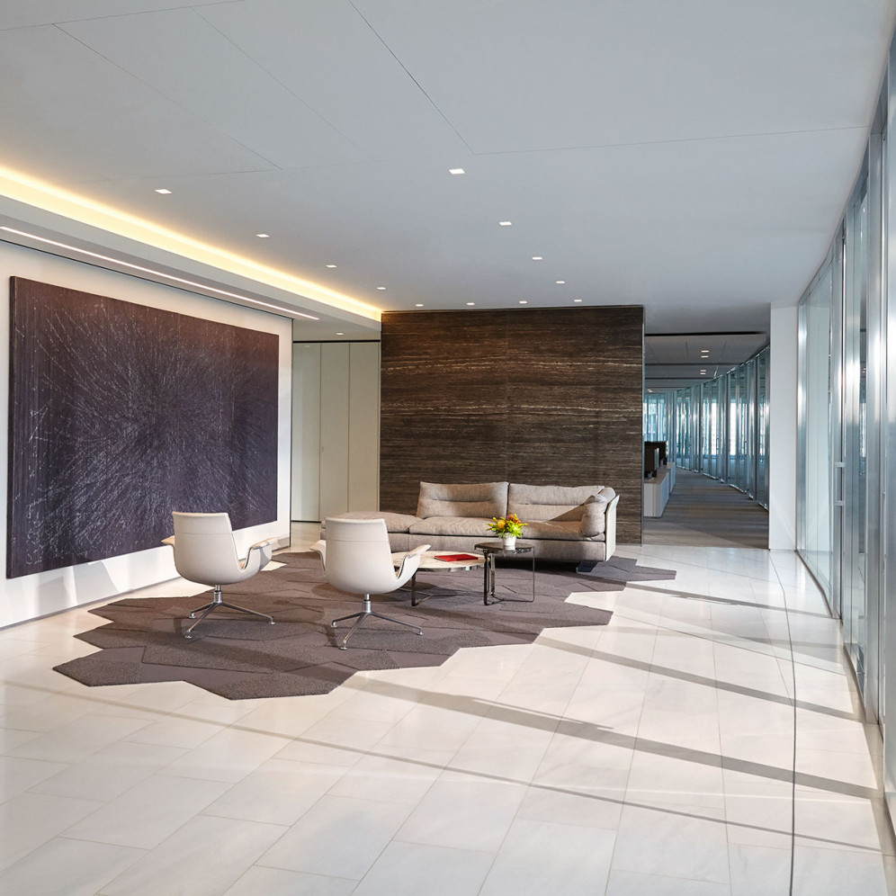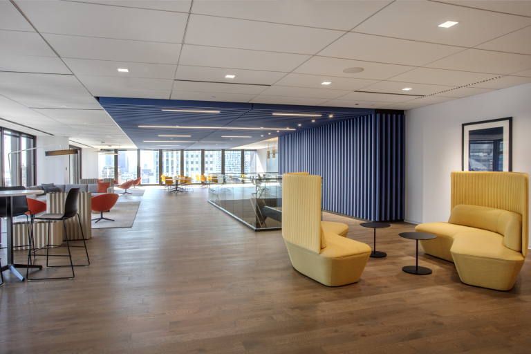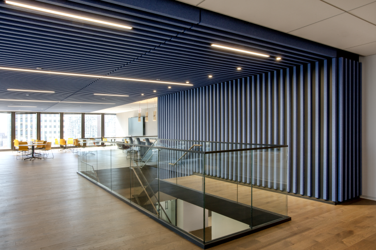 Phased construction ensured uninterrupted operations, delivering a seamless transition to a contemporary workspace that reflects the firm’s commitment to efficiency and collaboration. The design prioritizes sustainability and innovation, incorporating WELL Building standards and acoustic-enhancing materials to promote health and productivity.