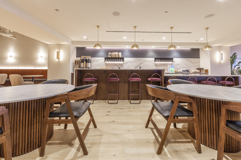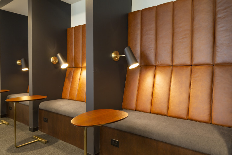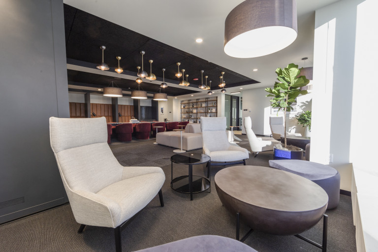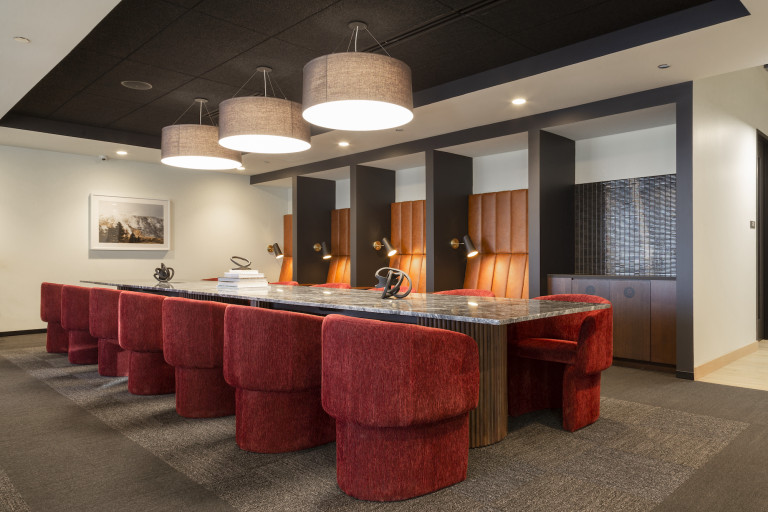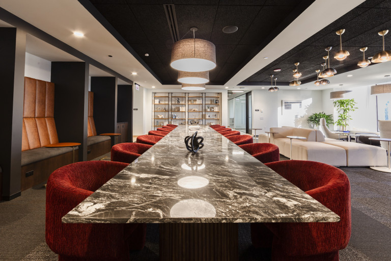 The 44th floor location has a luxurious lounge, board room and study, with expansive views of the city and lakefront. This renovation included a new elevator lobby and restrooms. DSI worked with the client to modify the original layout to include additional smaller offices that would accommodate smaller work groups as a result of COVID-19.