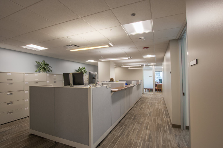 DSI worked closely with IA+D Studios to create Smith Amundsen’s new 4-story workspace. The project included a new conference room with the latest AV technology, tenant bathrooms, upgraded elevator lobby, private and shared offices, training rooms, multiple kitchens, war rooms, filing rooms and a new break room.