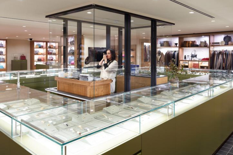 The 12,000 SF storefront on the Magnificent Mile brings together a host of features and services in an inviting space that reflects Chicago’s unique culture. In order to maximize the use of the available ground floor retail space, the DSI interiors team constructed a cantilevered staircase that connects clients to organized departments and custom services. A glass encased watchmaker station and CaféCafé, an eatery that serves locally produced fare are just two distinct amenities for this location. Sustainability has always been a focus for the brand and this mindset continues at their tenth location. An ecofriendly theme is represented at the forefront of design, materials used and construction. A state of the art security system keeps “the world’s largest marketplace for authenticated luxury consignment”, safe and protected.